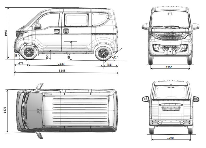 Dimensiones generales: 3395 × 1475 × 1950 mm